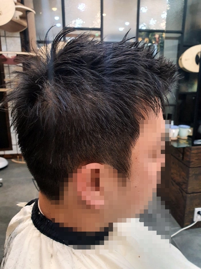 오늘 소개해드릴 스타일은 남자 짧은머리스타일의 남자 투블럭 펌입니다. 투블럭 컷 사진만 봐도 직관적으로 느껴지지. 머리 숱도 많고 힘이세기 때문에 머리가 길어지면 덥수룩해 보이는 머리이죠 고객님은 옆머리를 투블럭으로 커트할껀데요 너무 짧지 않는 기장으로 검은 느낌을 살려서 투블럭 18미리에 다운펌을 할.