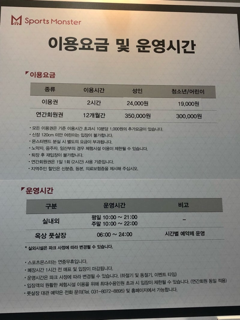그땐 스포츠몬스터를 해볼예정이에요 ㅋㅋㅋ. 스포츠몬스터 이용 가격 원래 가격은 성인 기준 2시간 자유이용권이 25000원이다. 이용요금은 기본적으로 2시간 기준 성인 2만 5천원 청소년어린이 2만원 입니다.