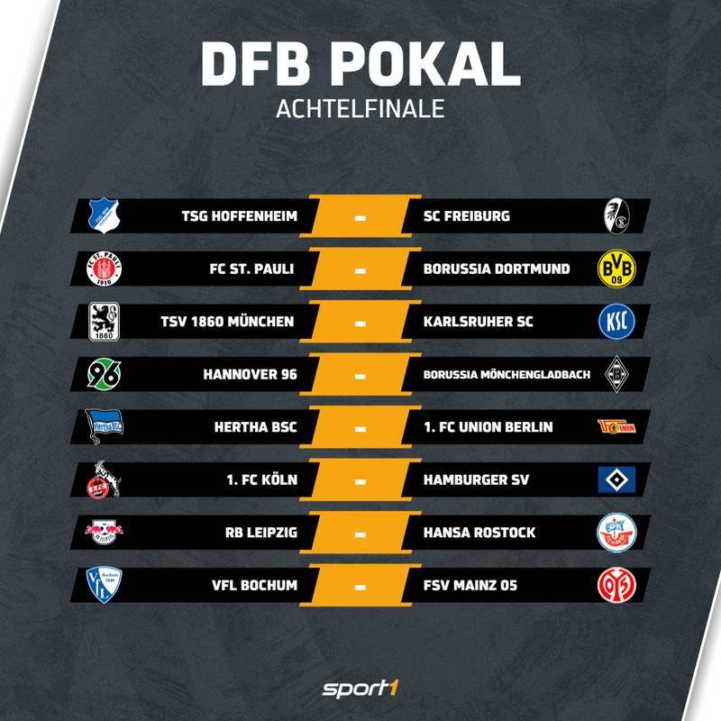 Das DFB-Pokal-Achtelfinale ist ausgelost. Das ist der Modus für die Auslosung. Titelverteidiger weiter im Rennen 1860 München spielt sicher zu Hause Wenn um 1830 die Loskugeln aus den Trommeln gezogen werden steigt bei den Team-Verantwortlichen die.